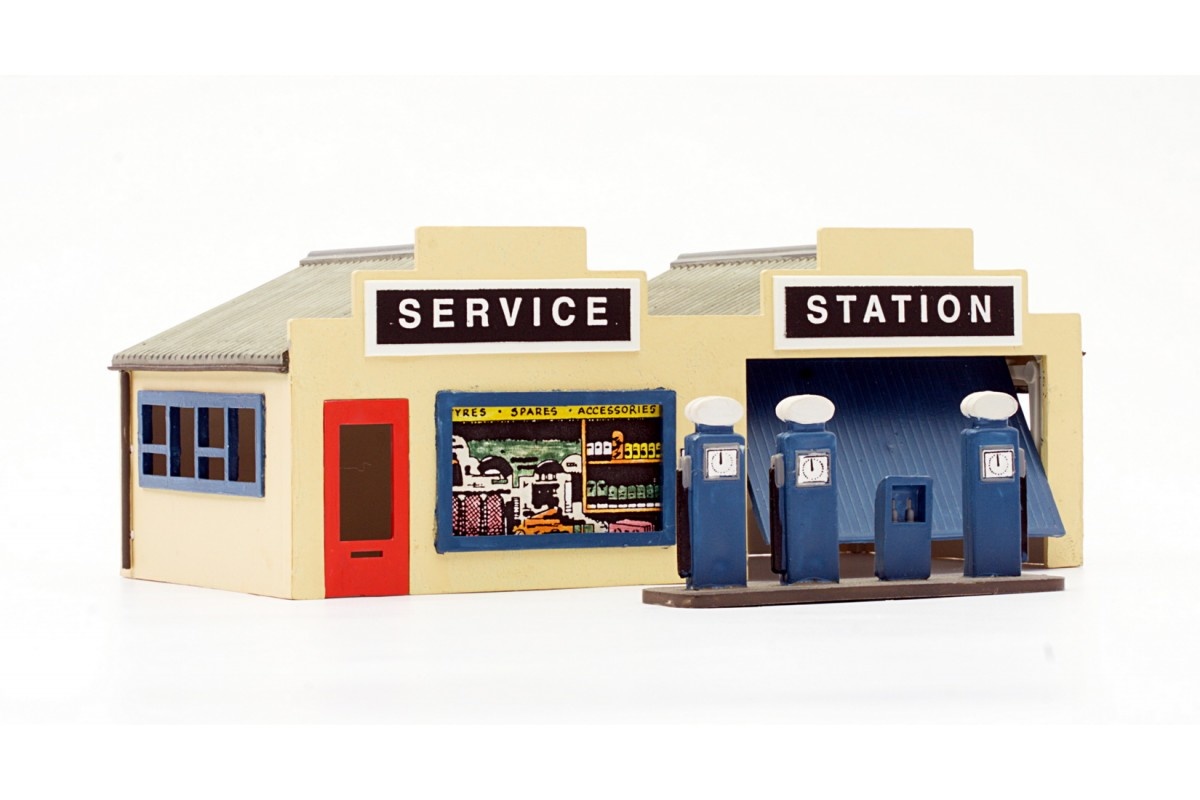 Plastikbausatz einer Tankstelle. Für das beste Endresultat soll das modell bemalt werden (Farbe und Kleber nicht mitgeliefert).