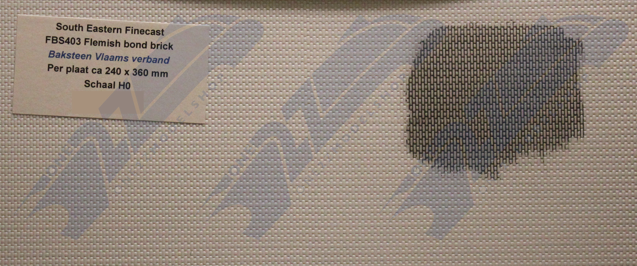 Styrenplatte mit einem Backstein Flämischer Verbund motiv in Weiße Farbe. Die Platte ist etwa 26 x 36 cm groß (Effektiv brauchbar minimal 24x34cm) und ist sehr flexibel. Hiermit stellen Sie Gebäuden nach eigenem Entwurf her. Dies betrifft Artikelnummer FBS403 von South Eastern Finecast