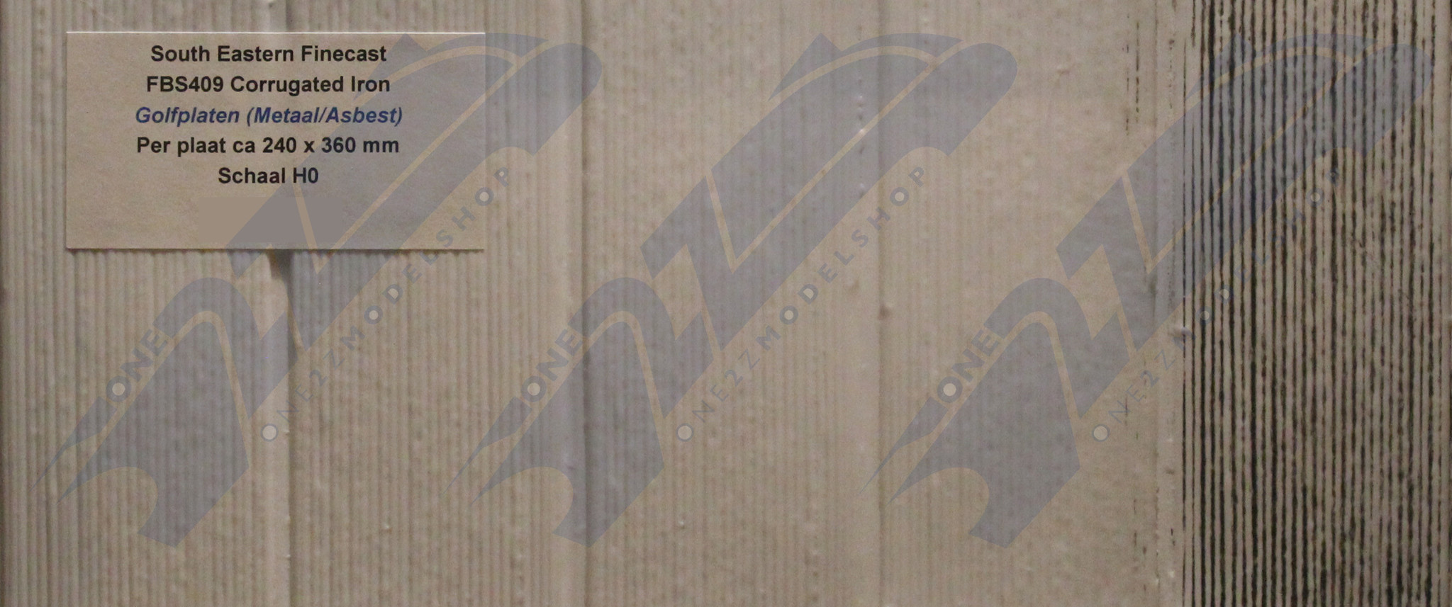 Styrenplatte mit einem Wellblechplatte motiv in Weiße Farbe. Die Platte ist etwa 26 x 36 cm groß (Effektiv brauchbar minimal 24x34cm) und ist sehr flexibel. Hiermit stellen Sie Gebäuden nach eigenem Entwurf her. Dies betrifft Artikelnummer FBS409 von South Eastern Finecast