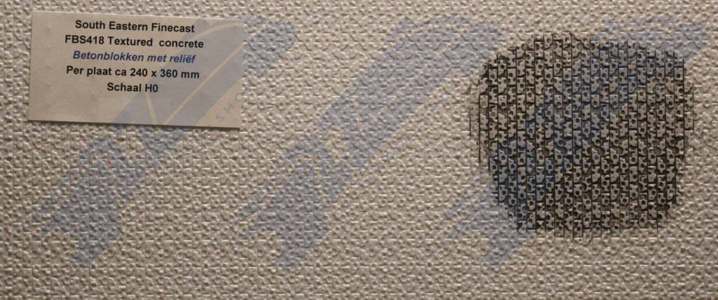 Styrenplatte mit einem Betonblöcke mit Struktur motiv in Weiße Farbe. Die Platte ist etwa 26 x 36 cm groß (Effektiv brauchbar minimal 24x34cm) und ist sehr flexibel. Hiermit stellen Sie Gebäuden nach eigenem Entwurf her. Dies betrifft Artikelnummer FBS418 von South Eastern Finecast