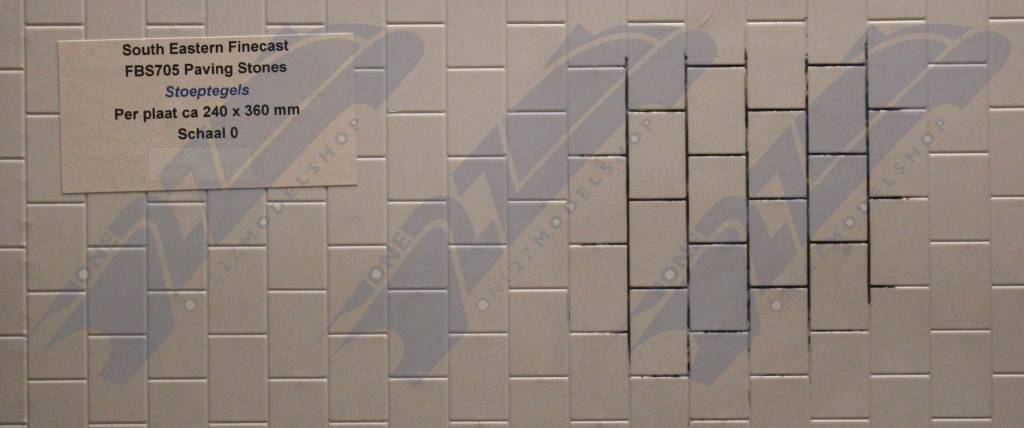 Styrenplatte mit einem Pflasterstein motiv in Weiße Farbe. Die Platte ist etwa 26 x 36 cm groß (Effektiv brauchbar minimal 24x34cm) und ist sehr flexibel. Hiermit stellen Sie Gebäuden nach eigenem Entwurf her. Dies betrifft Artikelnummer FBS705 von South