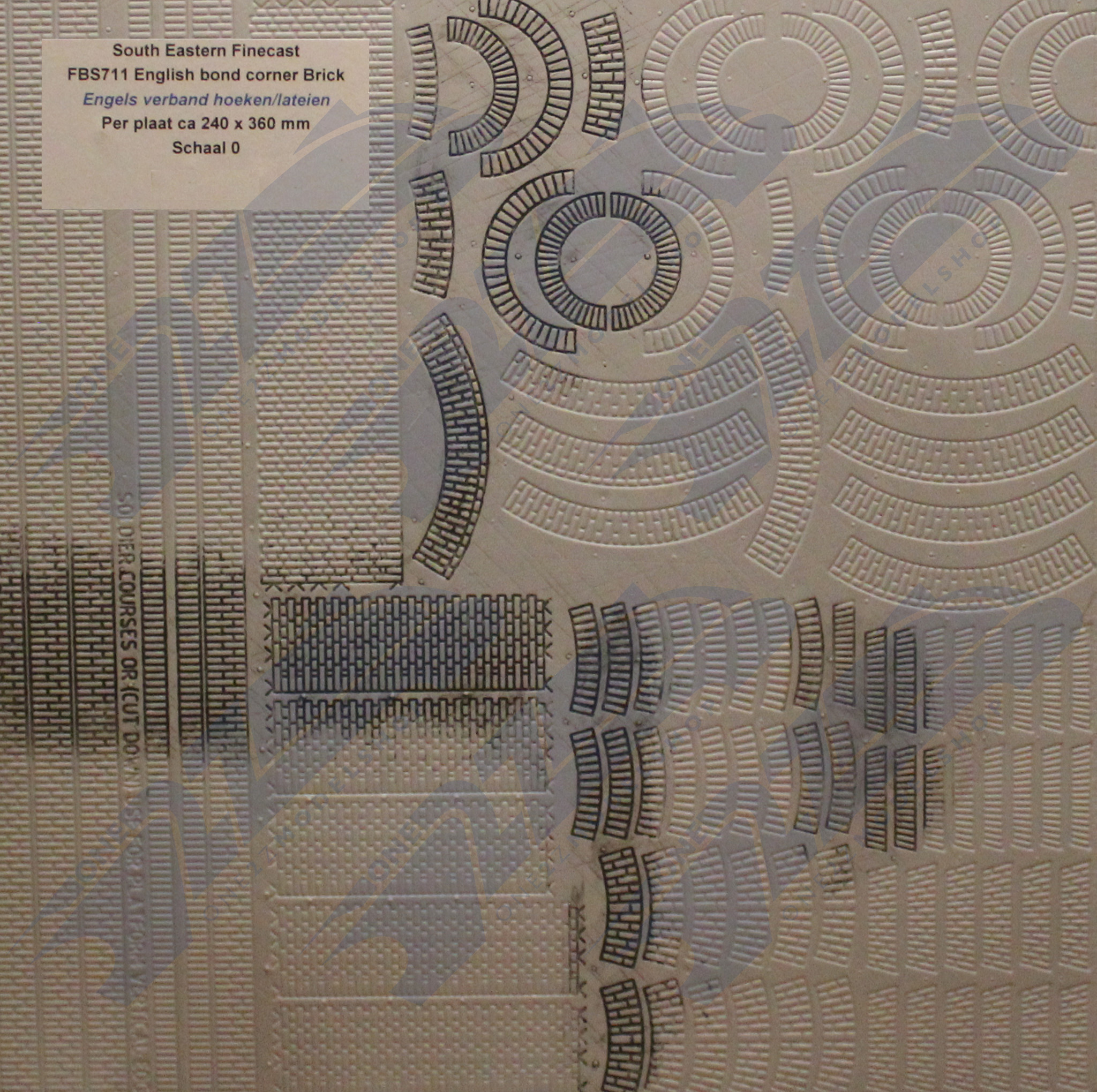 Styrenplatte mit einem Backstein Englischer Verbund motiv Ecken und Steinbögen in Weiße Farbe. Die Platte ist etwa 26 x 36 cm groß (Effektiv brauchbar minimal 24x34cm) und ist sehr flexibel. Hiermit stellen Sie Gebäuden nach eigenem Entwurf her. Dies betrifft Artikelnummer FBS711 von South Eastern Finecast