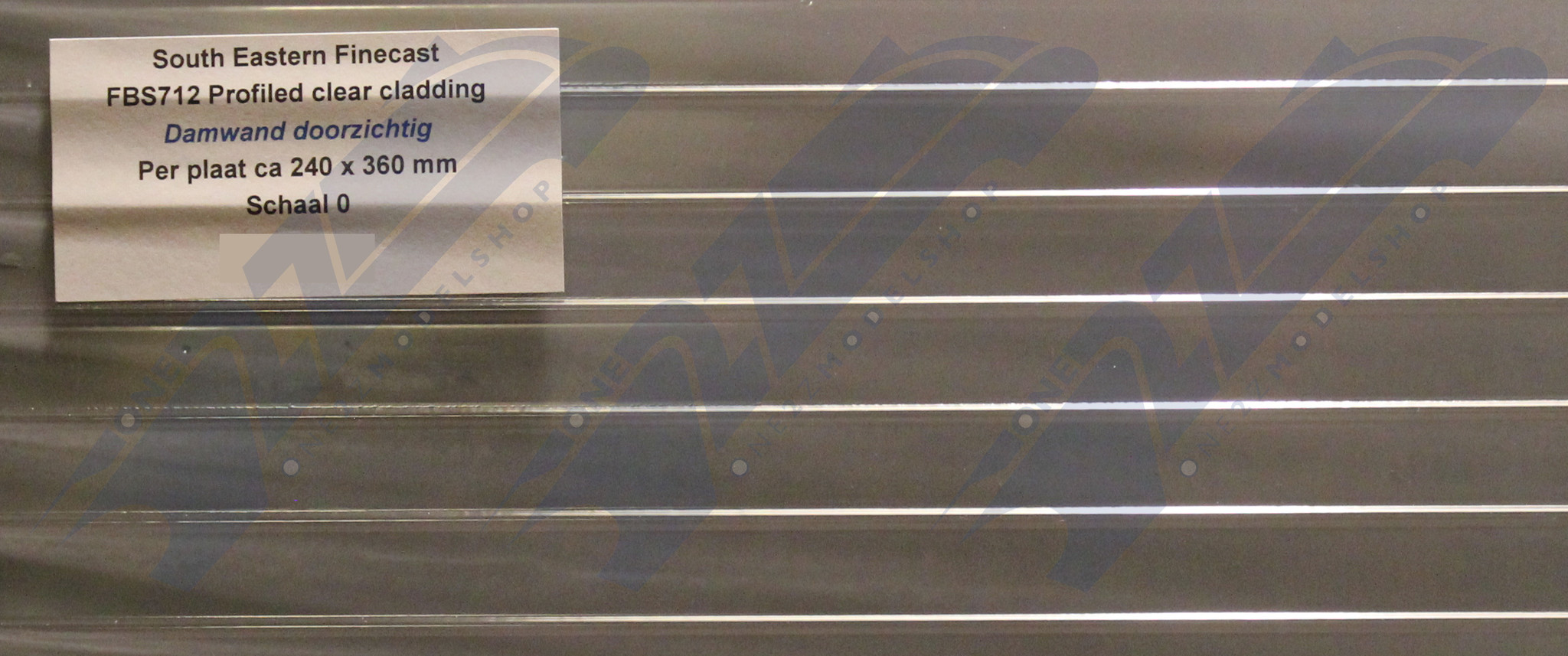 Styrenplatte mit einem Spundwand motiv durchsichtig. Die Platte ist etwa 26 x 36 cm groß (Effektiv brauchbar minimal 24x34cm) und ist sehr flexibel. Hiermit stellen Sie Gebäuden nach eigenem Entwurf her. Dies betrifft Artikelnummer FBS712 von South Easter