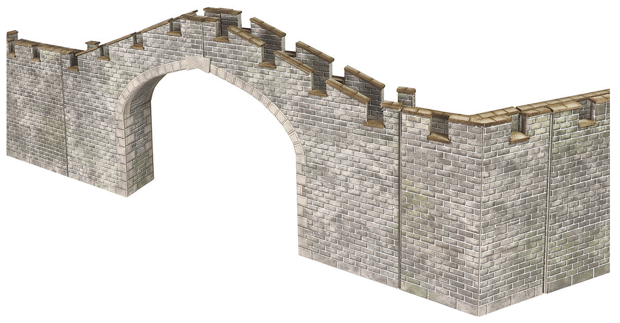 Eine Öffnung in einer mittelalterlichen Burgmauer oder Stadtmauer, um den Durchgang einer modernen Eisenbahn oder Straße zu ermöglichen.