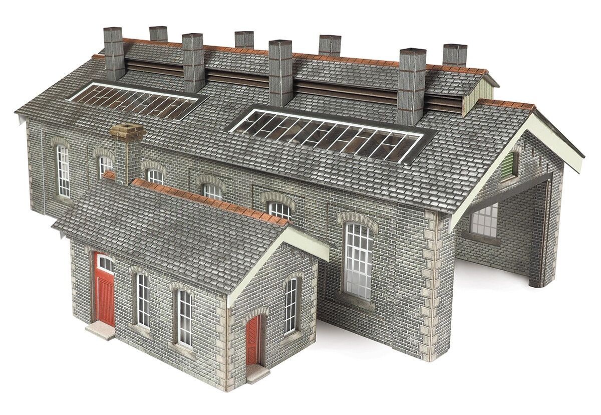 Ein wunderschön detaillierter Schuppen aus massivem Stein mit lasergeschnittenen Sparren, die die Innendetails authentischer und durch die Oberlichter besser sichtbar machen.