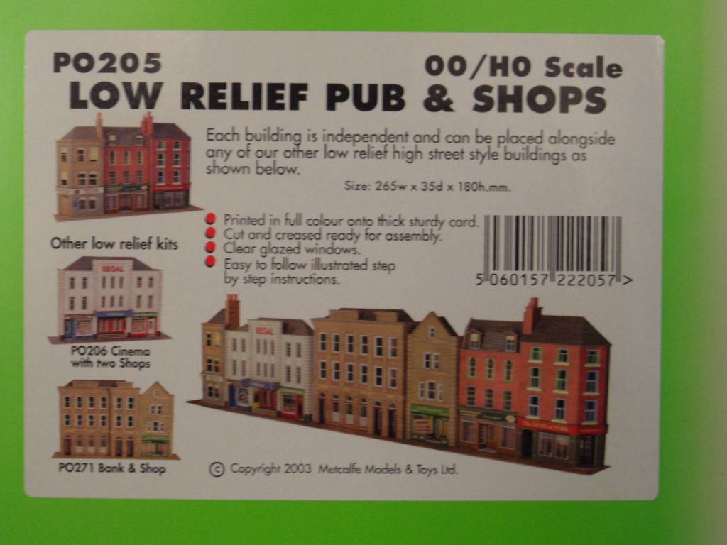 Dies ist ein Karton-Bausatz in Baugröße H0/OO. Es enthält Vorderseiten von städlichen Wohnhäusern mit im Erdgeschoß zwei Läden und eine Kneipe. Der Bausatz ist nur geeignet als Hintergrundmodell und kann sehr gut kombiniert werden mit Arkadenstutzmauern PO244 und PO245.
