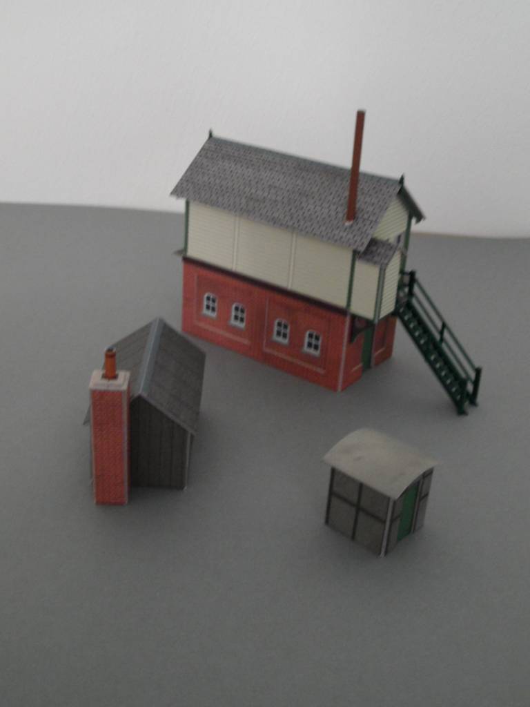 Dies ist ein Karton-Bausatz in Baugröße H0/OO. Ein hübsches Stellwerk in rotem Backstein mit Obergeschoß in Holzverkleidung. Daneben werden noch eine kleine Kohlenscheune und ein Beigebäude mitgeliefert. Neben Karton für den Hauptstruktur liegen eine Treppe und Dachornamente aus Plastik bei.