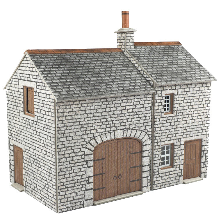 Dieses kleine Landhaus verfügt über eine optionale angrenzende Scheune, die für mehr Wohnraum umgebaut werden kann. Das Kit enthält eine Erweiterung und eine Veranda sowie Teile für den Umbau der Scheune. Ein modularer Aufbau, der sich leicht zu einer Häu