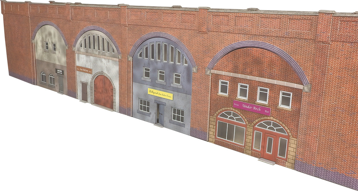 8 halbreliefierte Laden-/Garagenfassaden, die die Eisenbahnbögen der Viaduktbausätze PO240 und PO241 ausfüllen