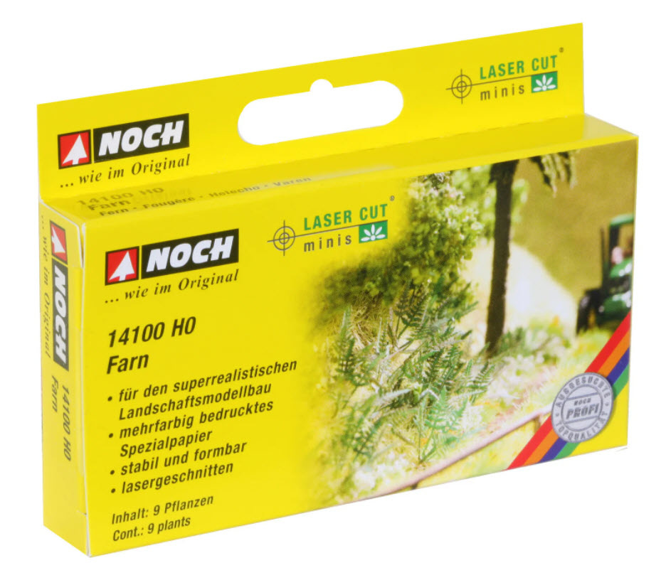 NOCH Laser-Cut minis sind eine Serie mit kleinen und realistischen Laser-Cut Bausätzen und Laser-Cut Pflanzen. Die äußerst filigranen Miniaturpflanzen werden mit dem Laser aus stabilem, mehrfarbig bedrucktem Spezialpapier geschnitten.
