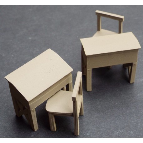 Weissmetall 2x Schreibtisch + Sitz, Spur O