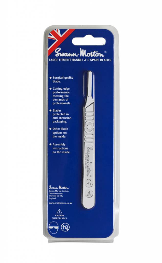 Swann Morton no. 4 Halter + 5x no. 26 Messer. Dies ist ein Halter für sehr scharfe, chirurgische Qualität Messer. Ideaal für diejenigen die dicke Pappe, Kunststoff oder ähnliches Material schneiden müssen. Ersatzmesser no. 21-24-25-25A-26