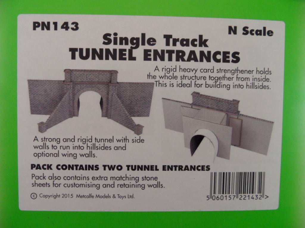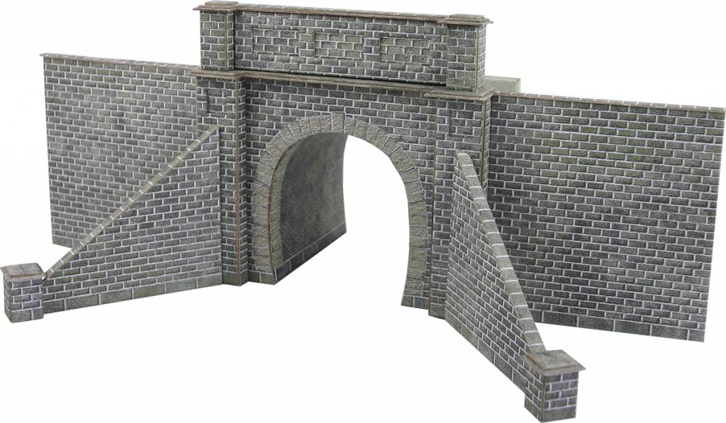 Cardboard kit of 2 single track tunnel entrances, in which the first part of the tunnel inside is provided in grey stone, so you do not look directly into a big hole.