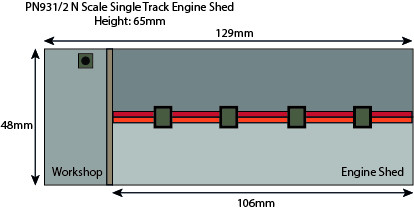 Cardboard scale modelkit in N gauge of single track engine shed in stone style. Designed for the smaller layout or branchline use. Fabulously designed with super detailing.
