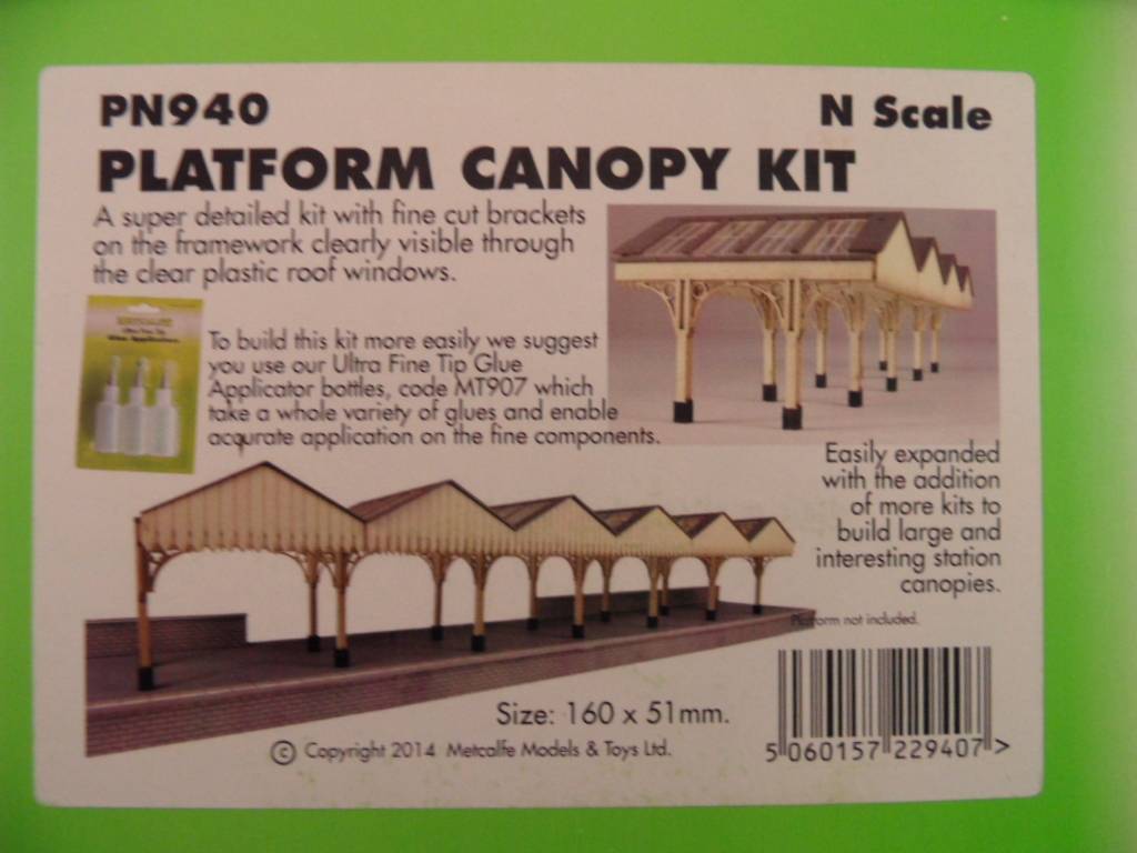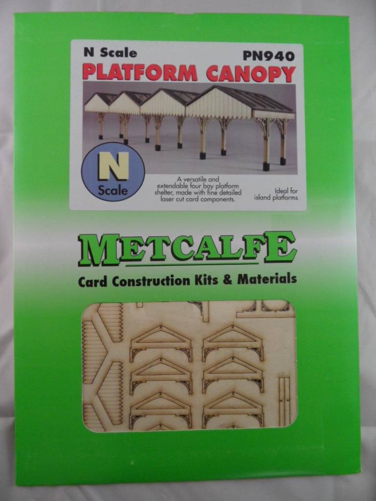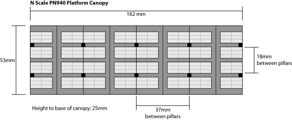 Cardboard kit of a platform canopy with lots of beautiful lasercut detailing, such as roof trusses and roof edges. Can be combined nicely with platforms PN110 (red brick) and PN135 (stone)
