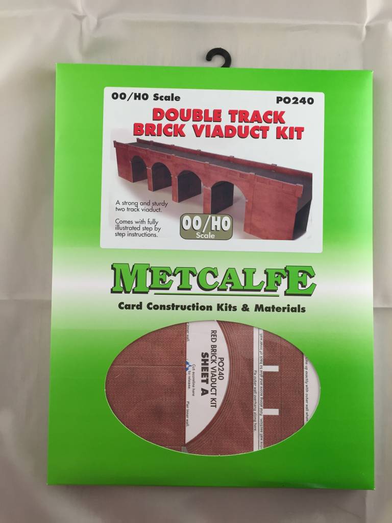 Cardboard scale modelkit in H0/OO gauge of a large red brick, two track viaduct with end walls (to run into embankments)