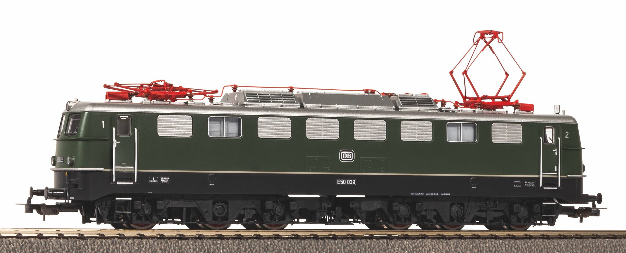 Novelty 2023: Print version of the DB class E 50 in Era III. The model follows the proven PIKO drive design with its construction. The solid five-pole diagonally grooved PIKO motor with two precisely balanced flywheel masses ensures excellent running characteristics. The tractive power of the locomotive driven over four axles is reinforced by two traction tyres, which are diagonally arranged on the inner running axles of both bogies. The front and rear lights are illuminated by LEDs, the red and white of which change with the direction of travel. The driver"s cab lighting and the tail light can be switched digitally. For this purpose, the locomotive is equipped with a PIKO sound decoder ex works.