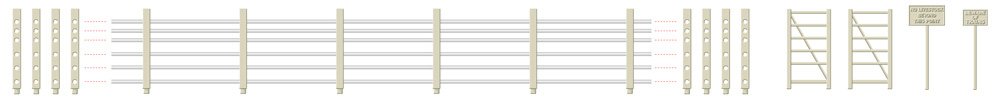 Plastic Concrete Fence Posts, gauge H0/00. In order to achieve the best result, this model can be painted. paint NOT included.