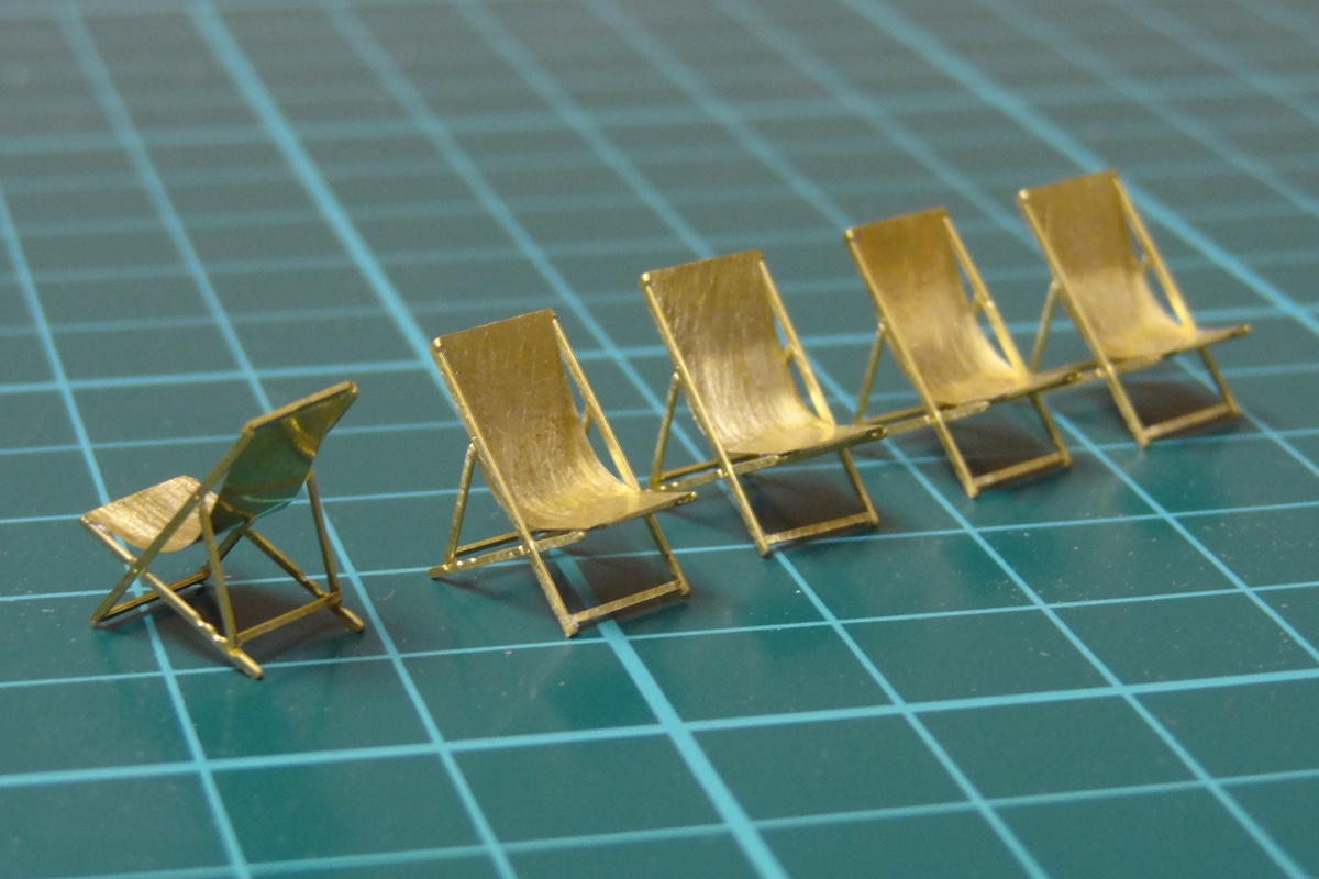 Each chair folds up from a single piece of brass - curve the seat part then fold round the leg frames (instruction drawings included!)