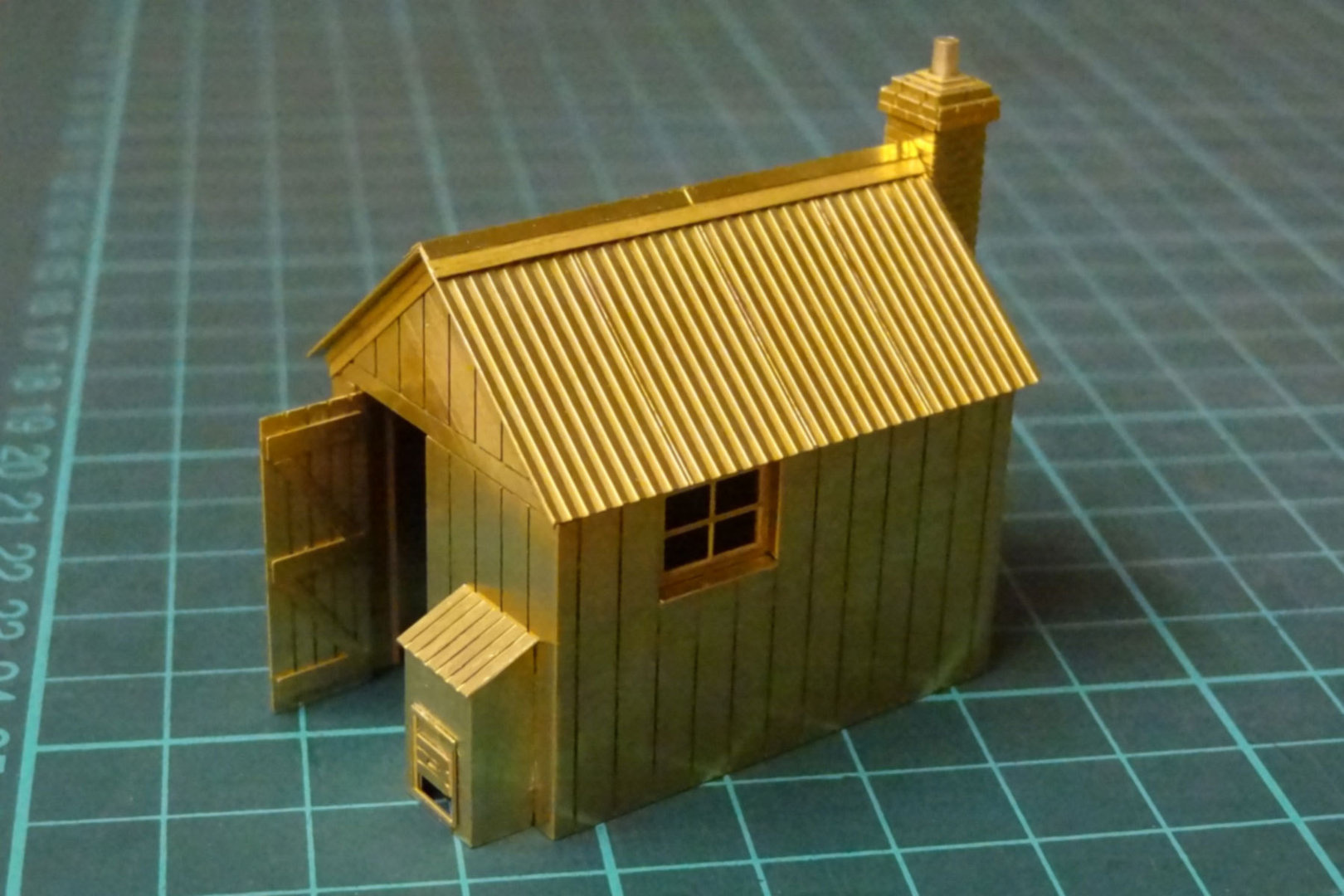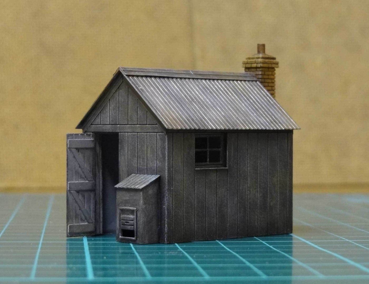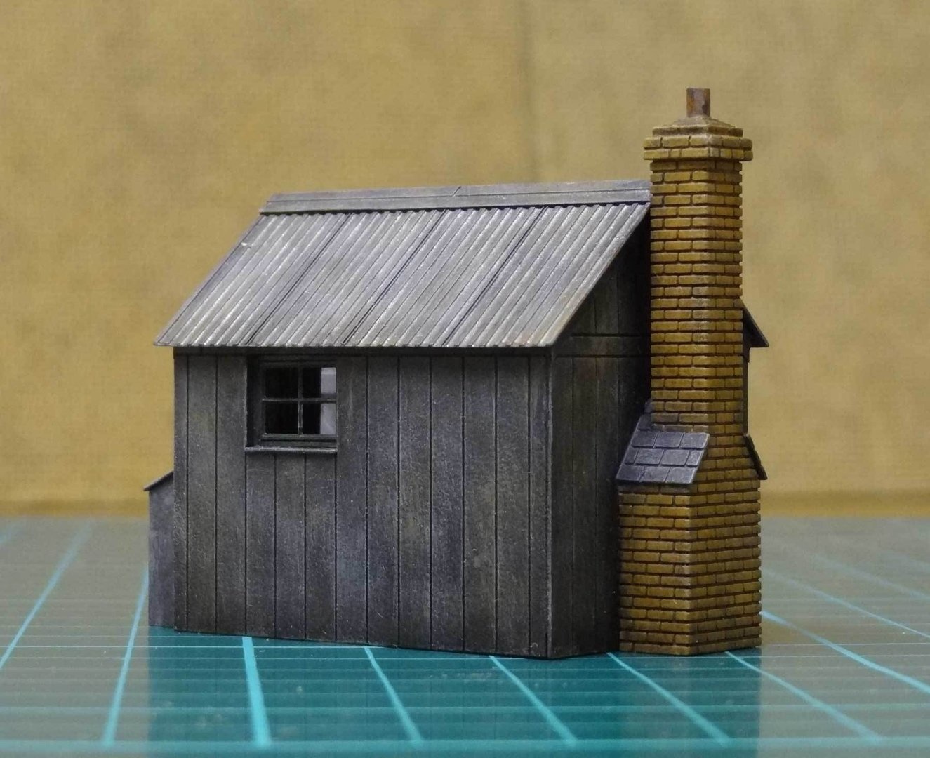 Materials & Detailing : built from railway sleepers with a corrugated roof, with a brick chimney stack, and a coal store. Includes the tube for the chimney pot.