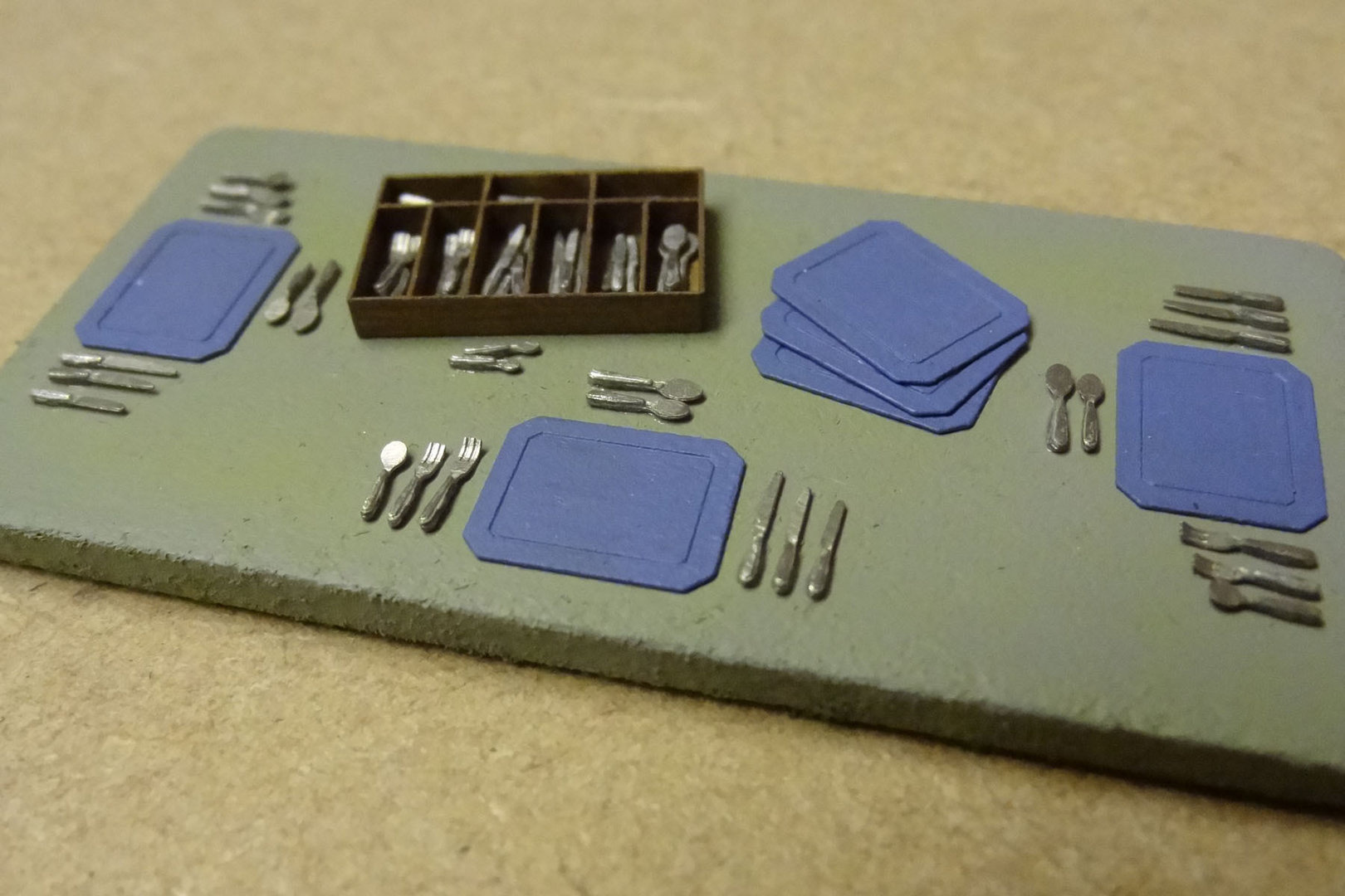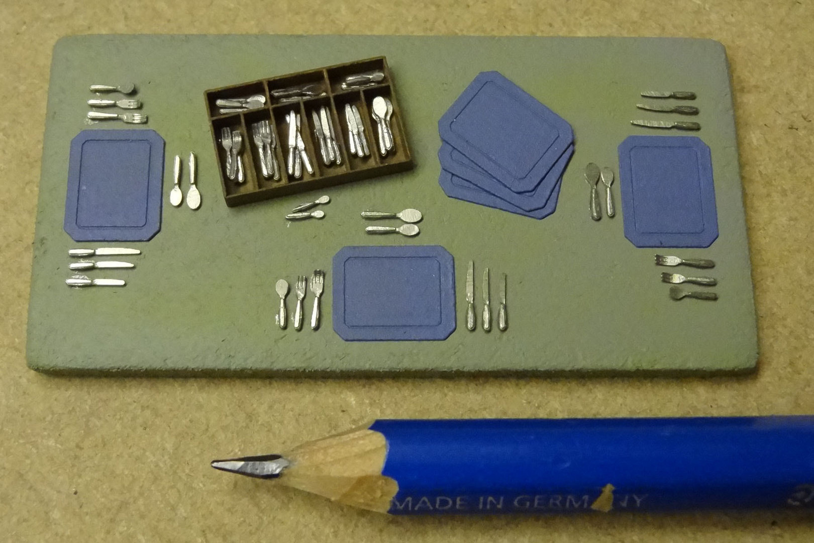 Includes six place settings of silverware, six table mats, and a cutlery storage tray.