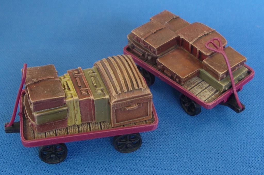 Luggage loads, gauge O in resin. In order to achieve the best result, this model must be painted. paint and glue NOT included.