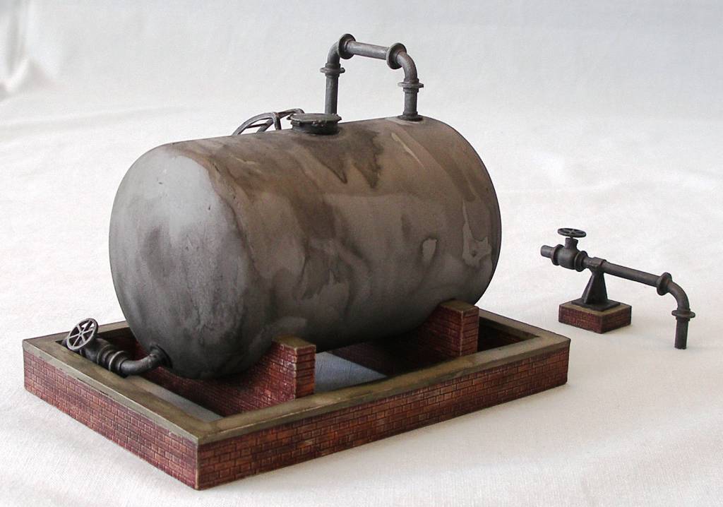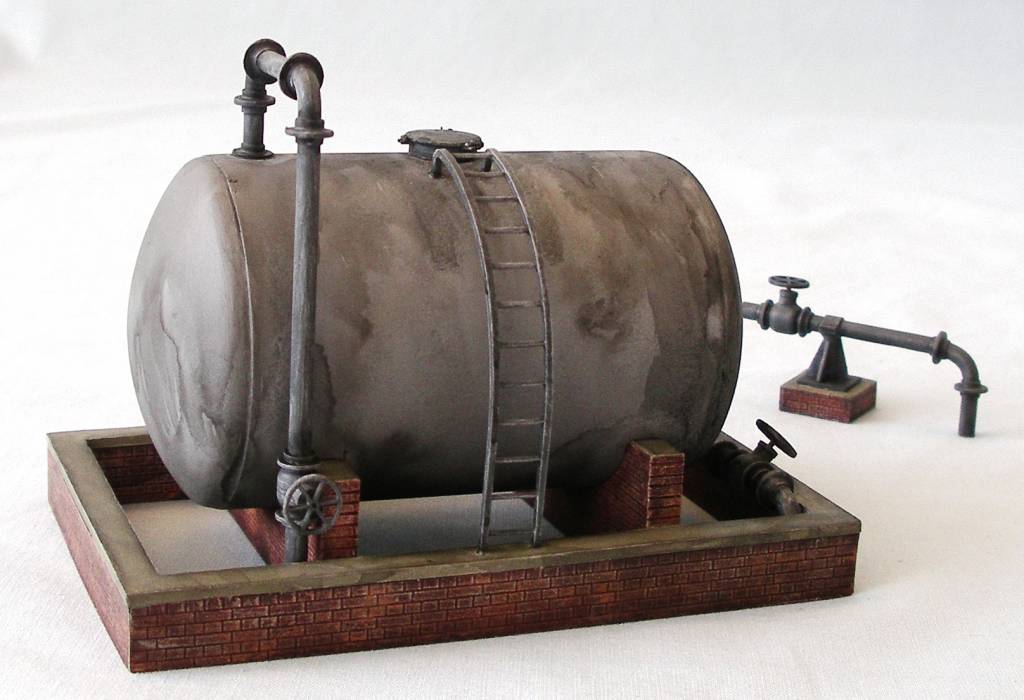 Kit of a fuel storage tank, gauge O consisting of resin, plastic and whitmetal parts. In order to achieve the best result, this model can be painted. paint and glue NOT included.