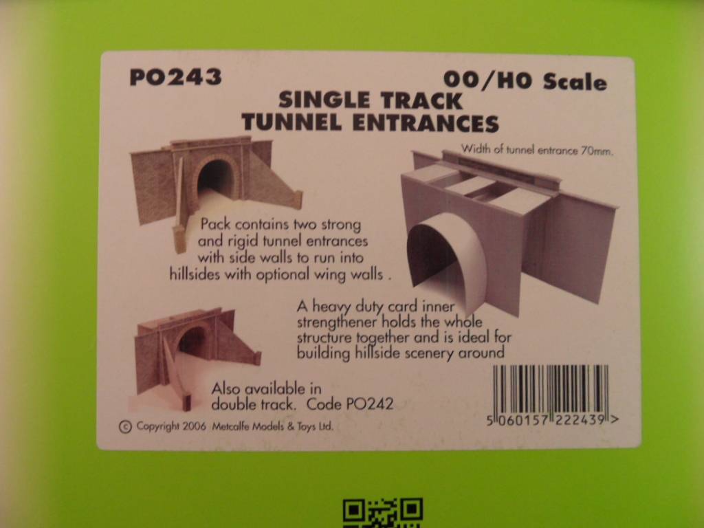 Kartonnen bouwkit voor 2 enkelspoors tunnelpoorten, waarbij het eerste stuk van de tunnel ook in grijs stenen afwerking wordt gebouwd, zodat er niet gelijk in een gat wordt gekeken.