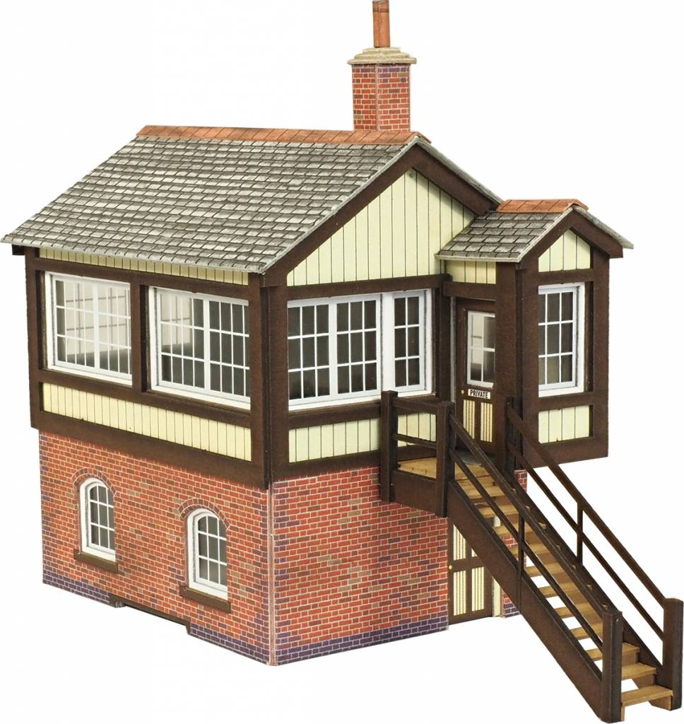 Bouwkit van een seinhuis in de stijl van de Engelse G.W.R. (Great Western Railway) voorzien van diverse lasergeneden details (trap) en de mogelijkheid om deze ofwel in rode baksteen, ofwel in grijze steen op te bouwen. Past heel mooi bij Wayside station (PO238), Wayside Shelter (PO239)