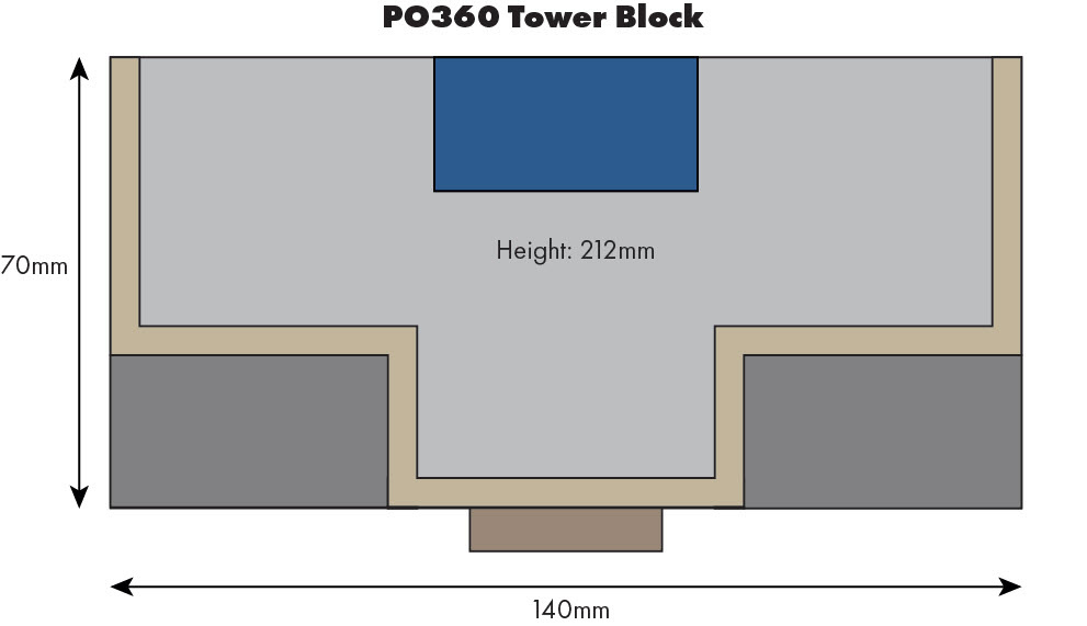 Een modern flatgebouw in half- of laagreliëf, een perfecte achtergrond voor uw lay-out. Combineer twee sets rug aan rug voor een compleet gebouw.