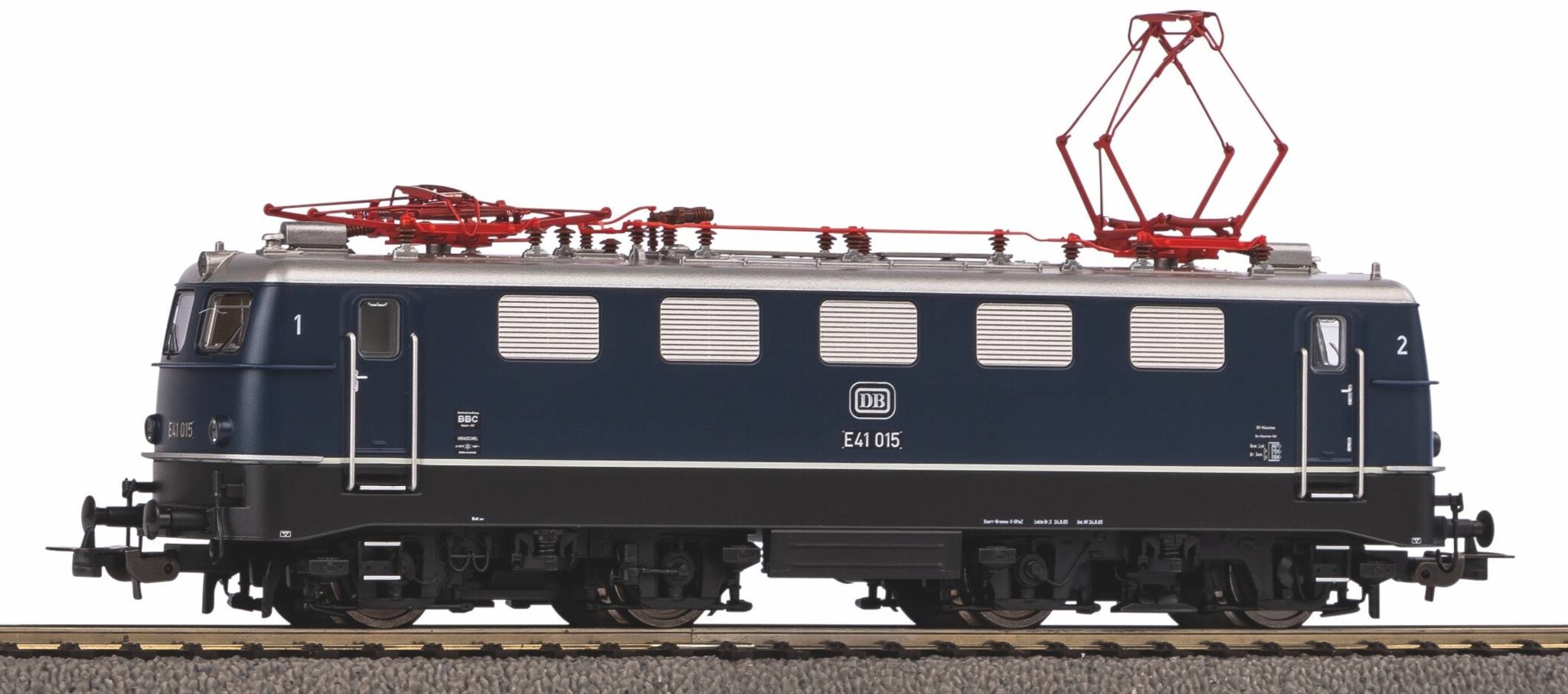 Neuheit 2023: Das PIKO Modell der BR E 41 erscheint in den Farben der DB in Epoche III. Die Beleuchtung der Stirn- bzw. Schlusslampen erfolgt über LEDs, deren Rot bzw. Weiß mit der Fahrtrichtung wechselt. Technisch-konstruktiv entspricht das Modell den bekannten PIKO Modellen der BR 141. Das Modell besitzt in der Soundvariante ab werk einen passenden PIKO Sound-Decoder sowie einen Lautsprecher.